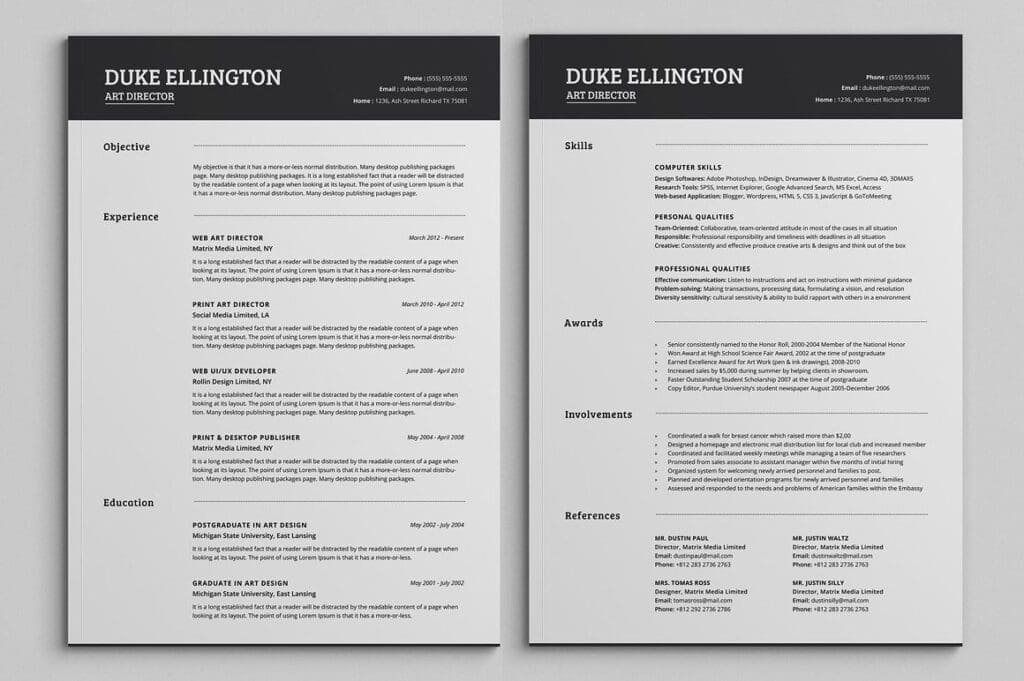 A two-page resume is a standard choice for candidates with extensive work experience. Suitable for mid-level professionals with more than 15 years of work history.