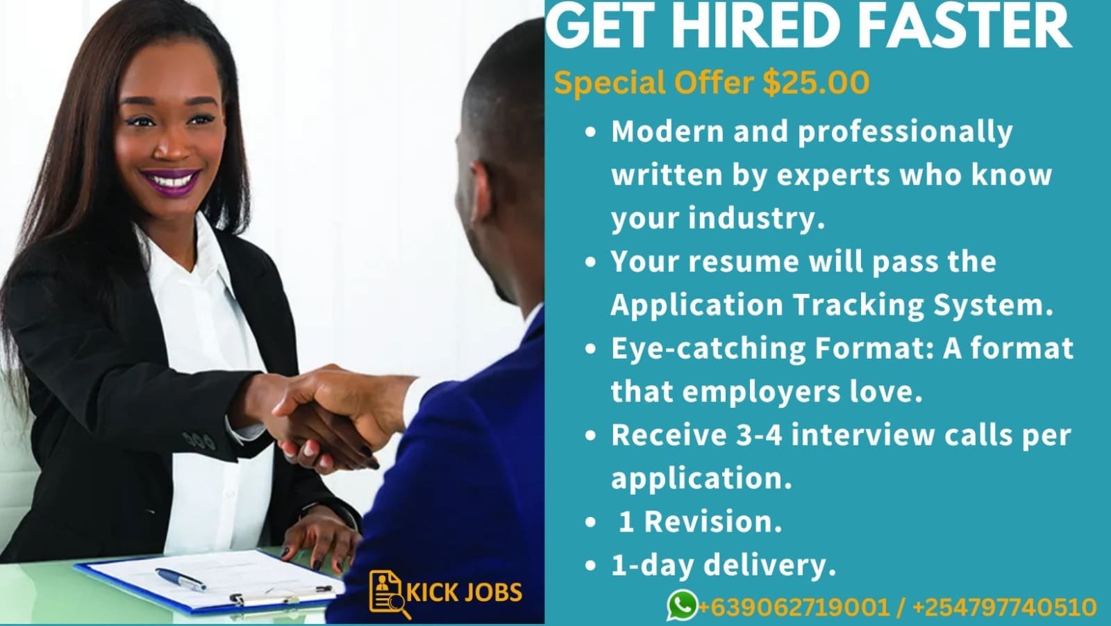 ✓ Keyword-integrated: Your resume will pass the Application Tracking System and land in the hands of the hiring manager.