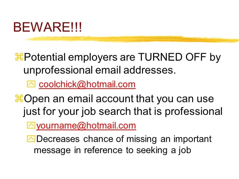 - Mistake: Having an inappropriate or overly casual email address.